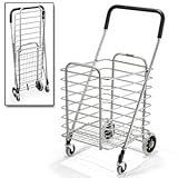 This Polder Superlight Shopping Cart is easy to use with the front wheels rotating 360 degrees for easy steering.The ultra lightweight aluminum construction offers strength. The total weight is only two pounds!It folds flat for convenient storage.the locking wheel brake keeps cart from rolling.It can easily hold up to 30 pounds. Basket dimensions: 16 x 13 x 15.5 inches.Open Dimensions: 35.75 x 18.5 x 19.75 inches.